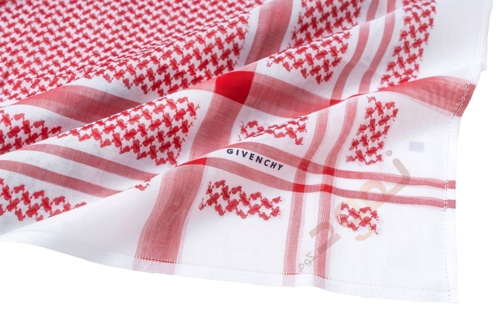 - تصميم شماغ جيفنشي يعكس التراث العربي الأصيل بنقوشه التقليدية التي تجسد الهوية الثقافية مع لمسة عصرية تواكب الأناقة الحديثة.